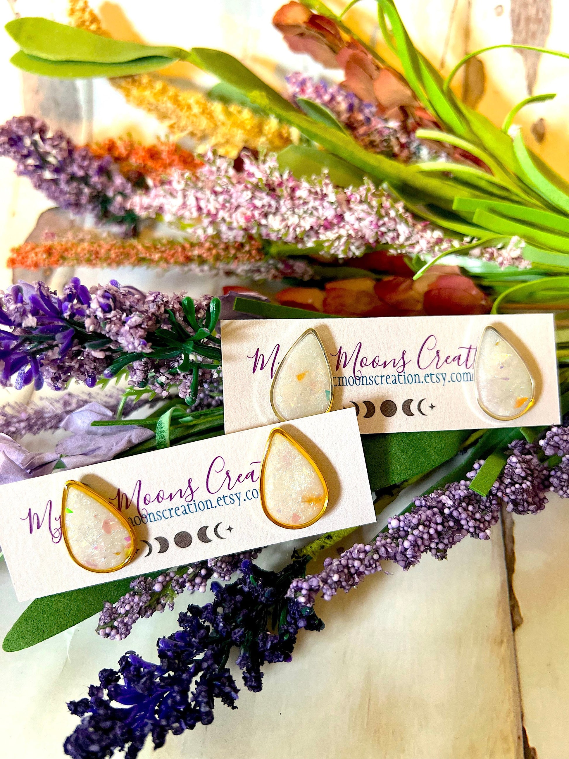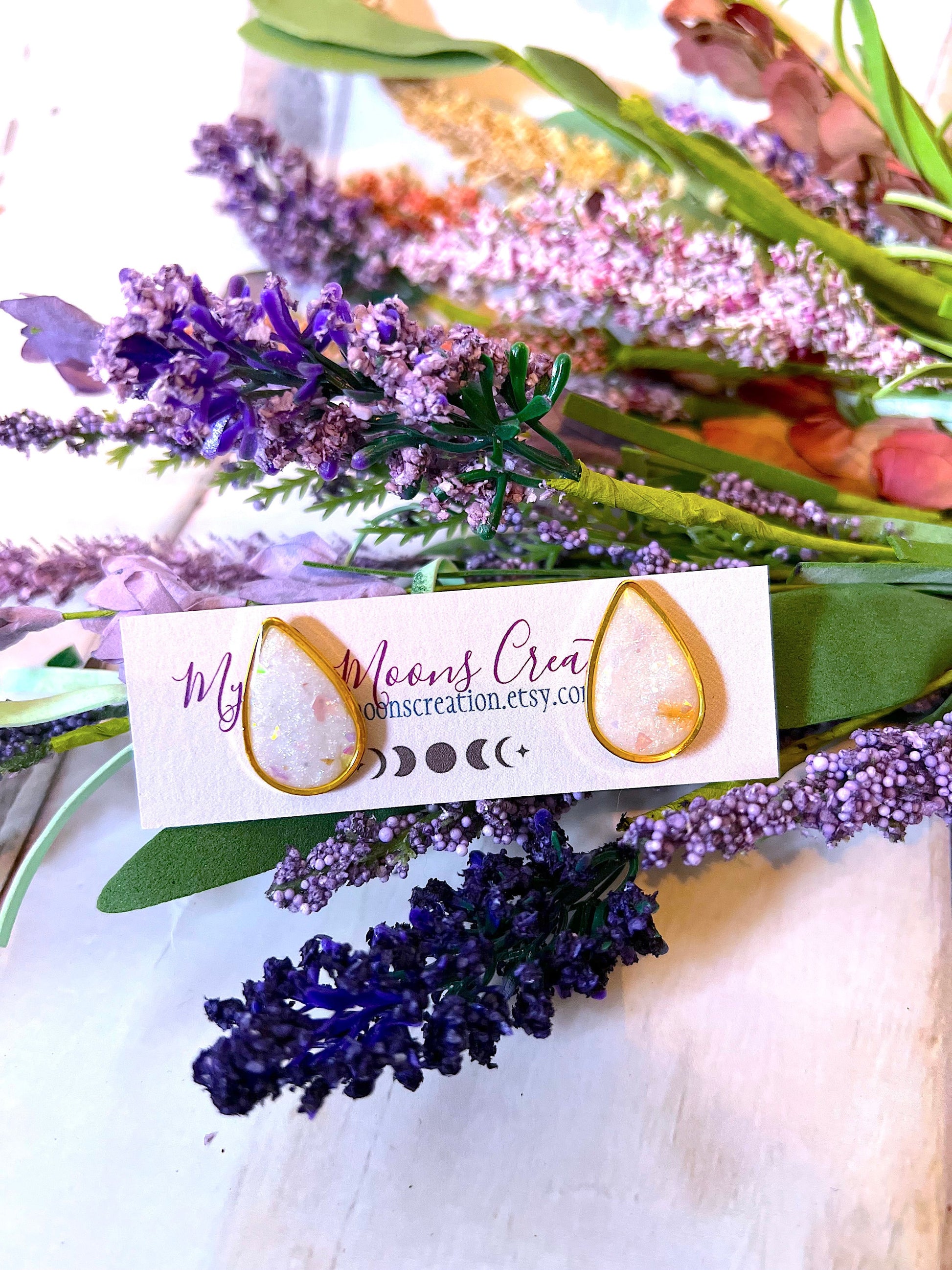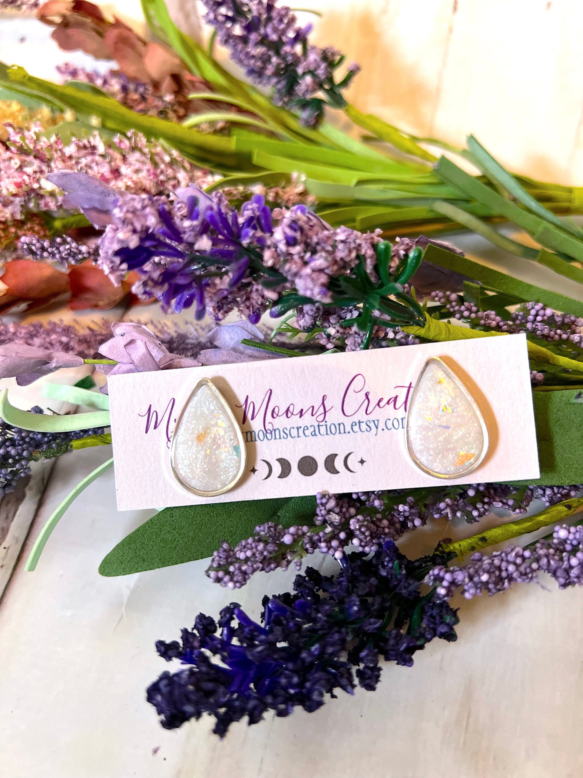 Handmade Small Faux Opal Teardrop Stud Earrings